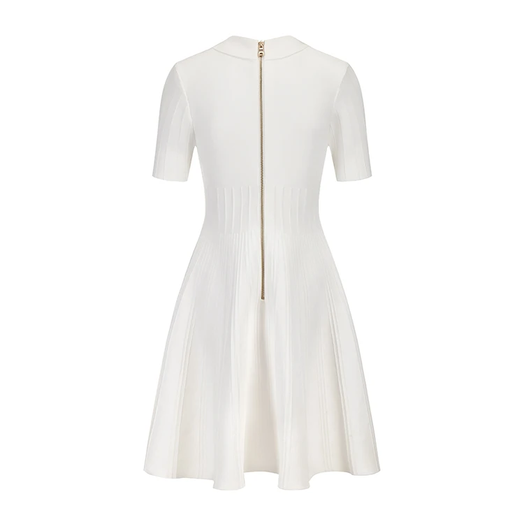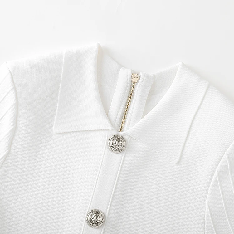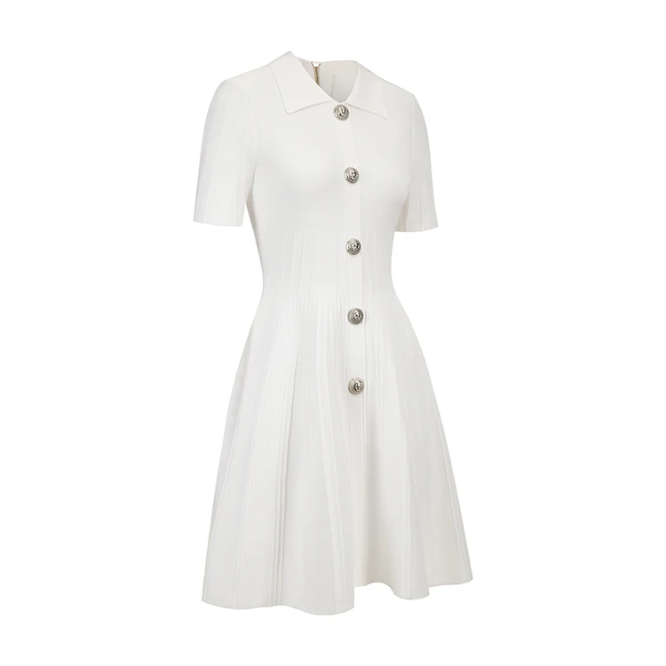 Knitwear Manufacturer Custom Spring Summer White Polo Neck Short Sleeve Elegant Casual Women Knit Sweater Dress